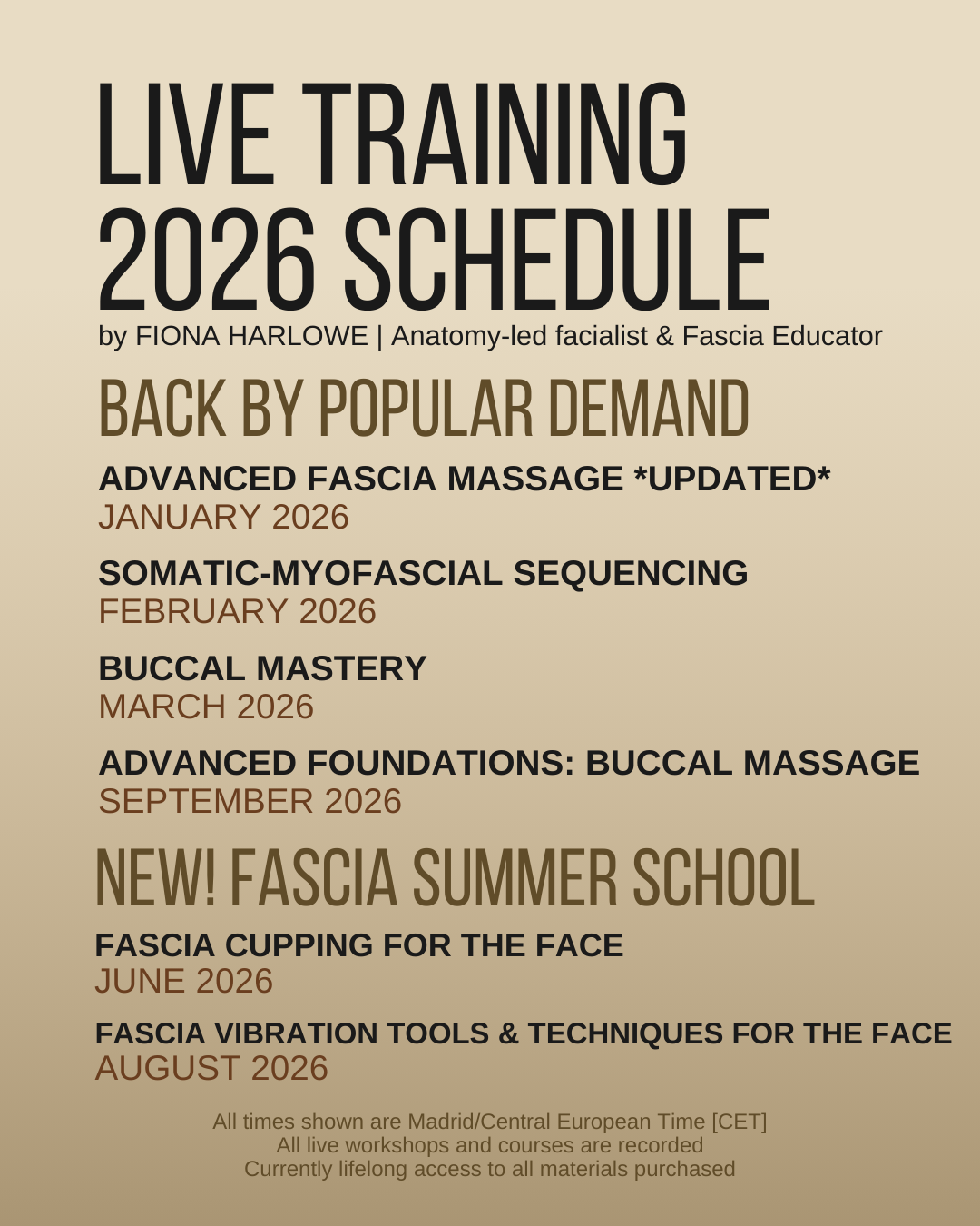Exciting new workshops, advanced buccal courses, brand-new fascia-facial tools Summer School and your most-loved favourites.