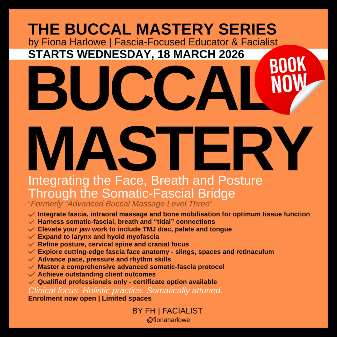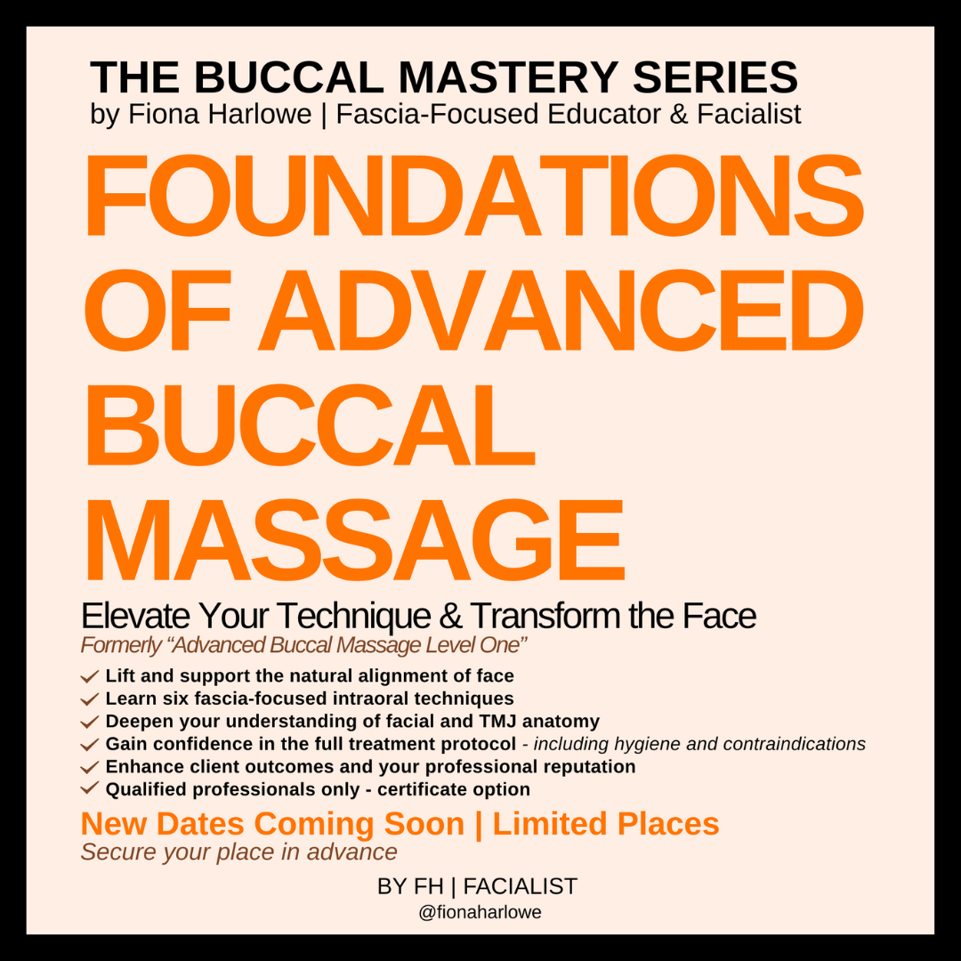 For facialists committed to advancing their skill set and technique delivery. This is fascia-focused buccal work delivered with somatic intelligence, anatomical accuracy, and clinical confidence — guiding clients toward deeper release, clearer function, and meaningful change.